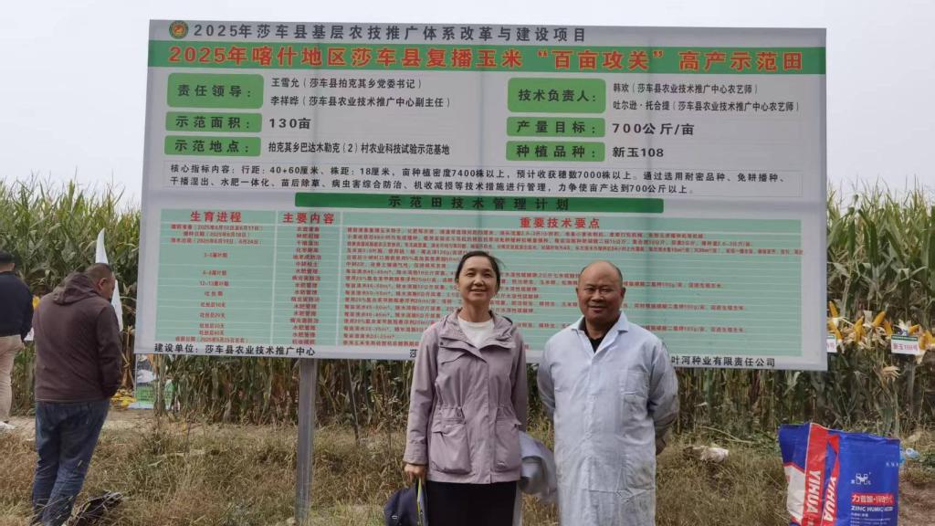 2025年10月5日-13日,应自治区玉米产业技术体系邀请,生物科技学院辜立新研究员和刘丹副教授作为测产专家组成员,赴南疆喀什地区及北疆哈巴河县开展"玉米大面积单产提升"项目现场测产验收工作。
