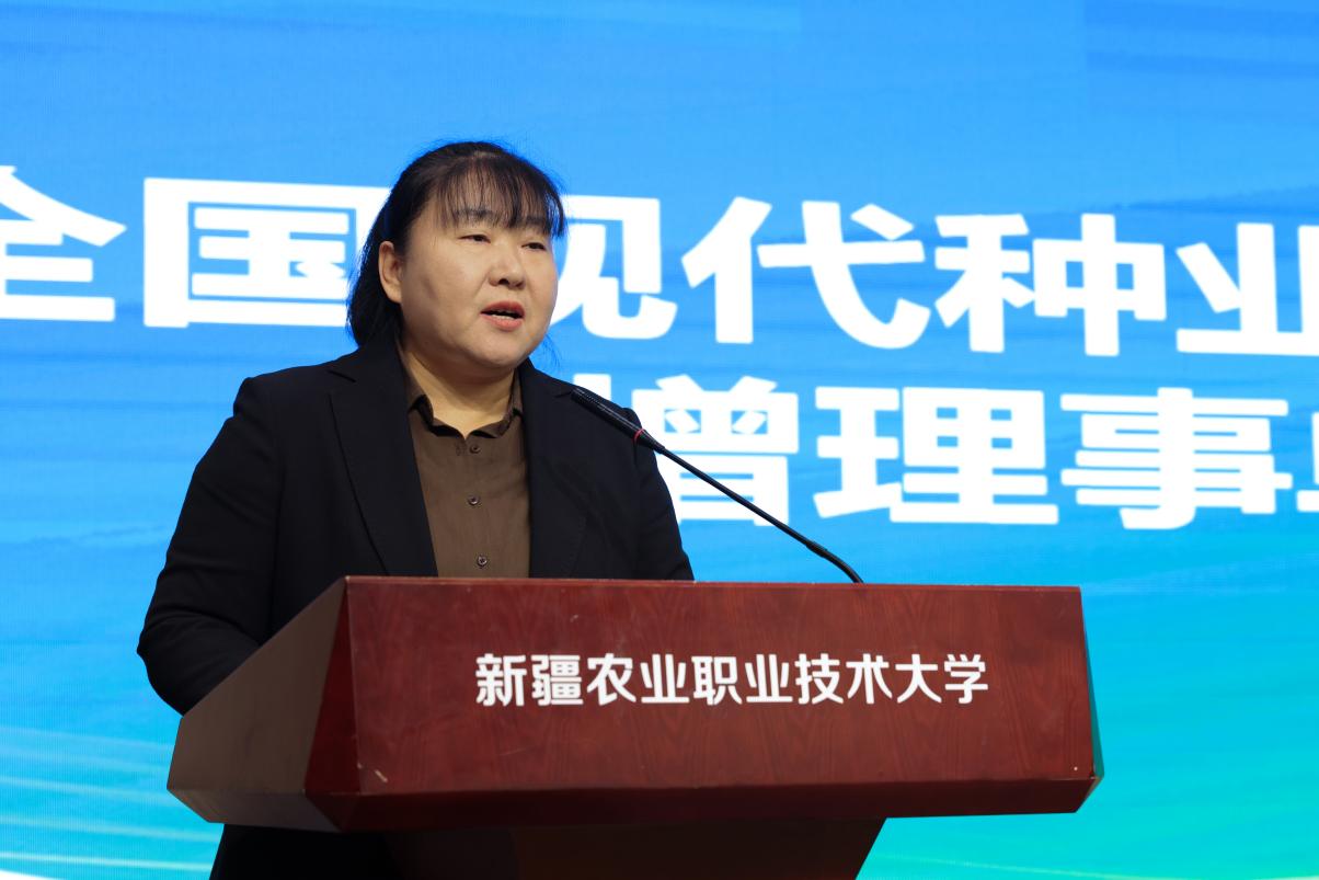 第二阶段会议由新疆农业职业技术大学生物科技学院院长贾丽慧主持。她指出,2025年学校现代种业技术专业群成功入选国家“双高计划”,在此背景下,会议宣布成立现代种业技术专业群建设指导委员会、课程开发研究中心和教材开发委员会,产教融合推进现代种业技术专业群建设走深、走实。