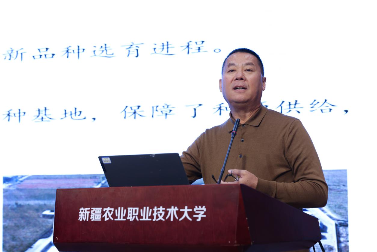 邓双义代表学校致欢迎辞,向与会嘉宾表示热烈欢迎。他强调,“强国必先强农,农强方能国强”。他回顾了共同体在115家理事单位协作下,在联合育人、技术攻关、平台建设等方面取得的显著成效,同时指出我国在种质资源挖掘、生物育种等领域仍面临挑战,亟需复合型高水平种业科技人才。面对《加快建设农业强国规划》的新要求,他表示新疆农业职业技术大学将与各成员单位携手,深化协同机制,优化人才培养,为现代农业发展提供坚实支撑。